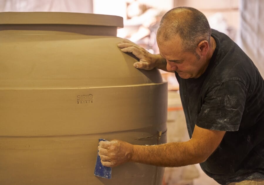 Sirio Amphorae est né comme un laboratoire de recherche et développement dans le but de donner une nouvelle vie à l'objet qui était le témoin de notre humanité. Des années de perfectionnement nous ont conduit à évoluer de la terre cuite vers le matériau parfait: la céramique microporeuse. Un mélange d'argiles et de minéraux répondant aux exigences requises pour une utilisation œnologique sûre.